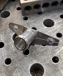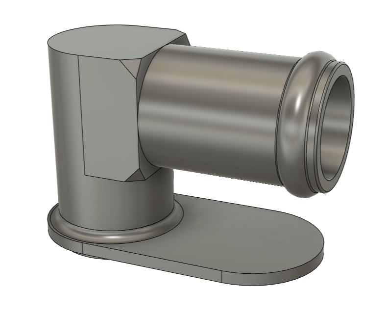 End cap hose fitting adapter is a 2 piece component that needs to be welded together. Has tabs for easy centering into the extrusion, and accepts the 5/8″ hose fitting.